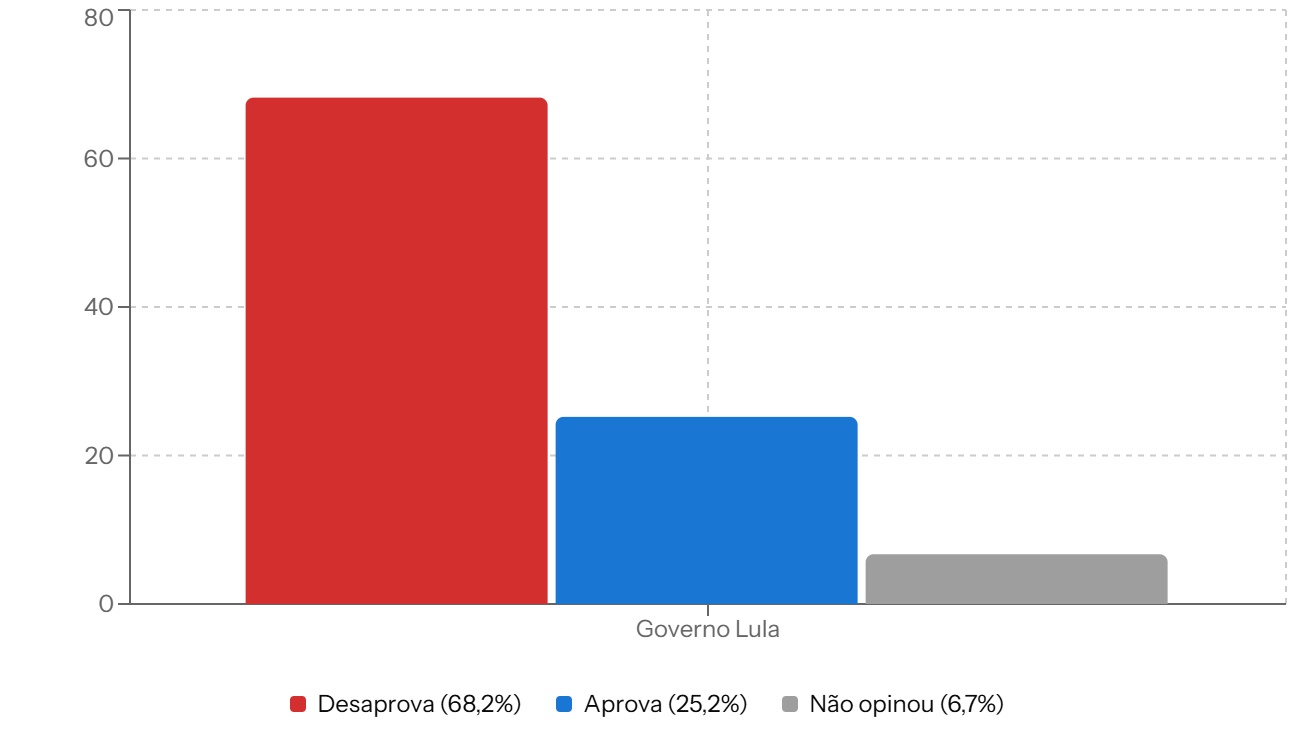 Por outro lado, o trabalho do presidente Lula no Governo Federal é desaprovado pela maioria dos entrevistados em Aparecida de Goiânia, com 68,2% de desaprovação e apenas 25,2% de aprovação.