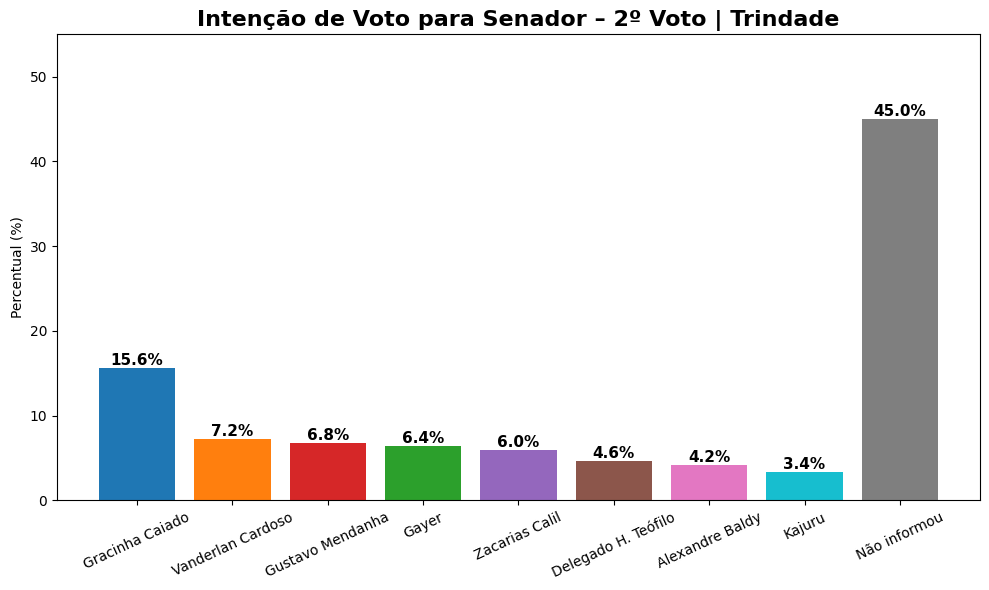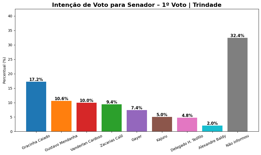A pesquisa realizada pelo Instituto Gazeta de Pesquisas (IGAPE) em Trindade revela um cenário pulverizado na corrida para o Senado Federal, tanto no primeiro quanto no segundo voto, com liderança relativa e alto índice de eleitores indecisos.