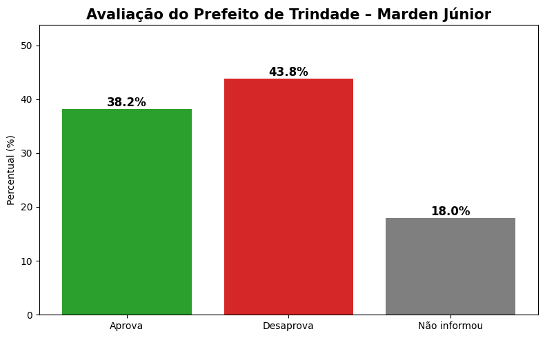 Os números da pesquisa IGAPE em Trindade deixam um recado direto e objetivo: a baixa aprovação do prefeito Marden Júnior