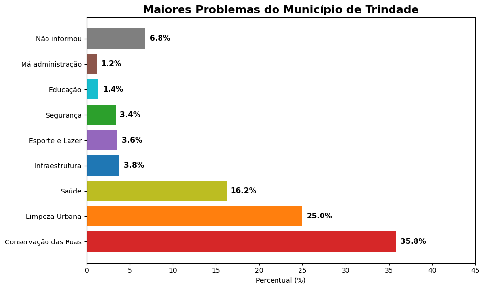 A pesquisa mostra que os principais problemas de Trindade estão diretamente ligados à esfera de responsabilidade da Prefeitura: