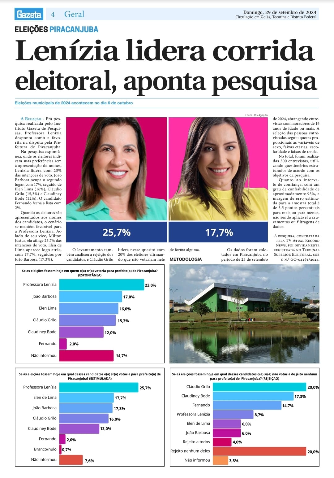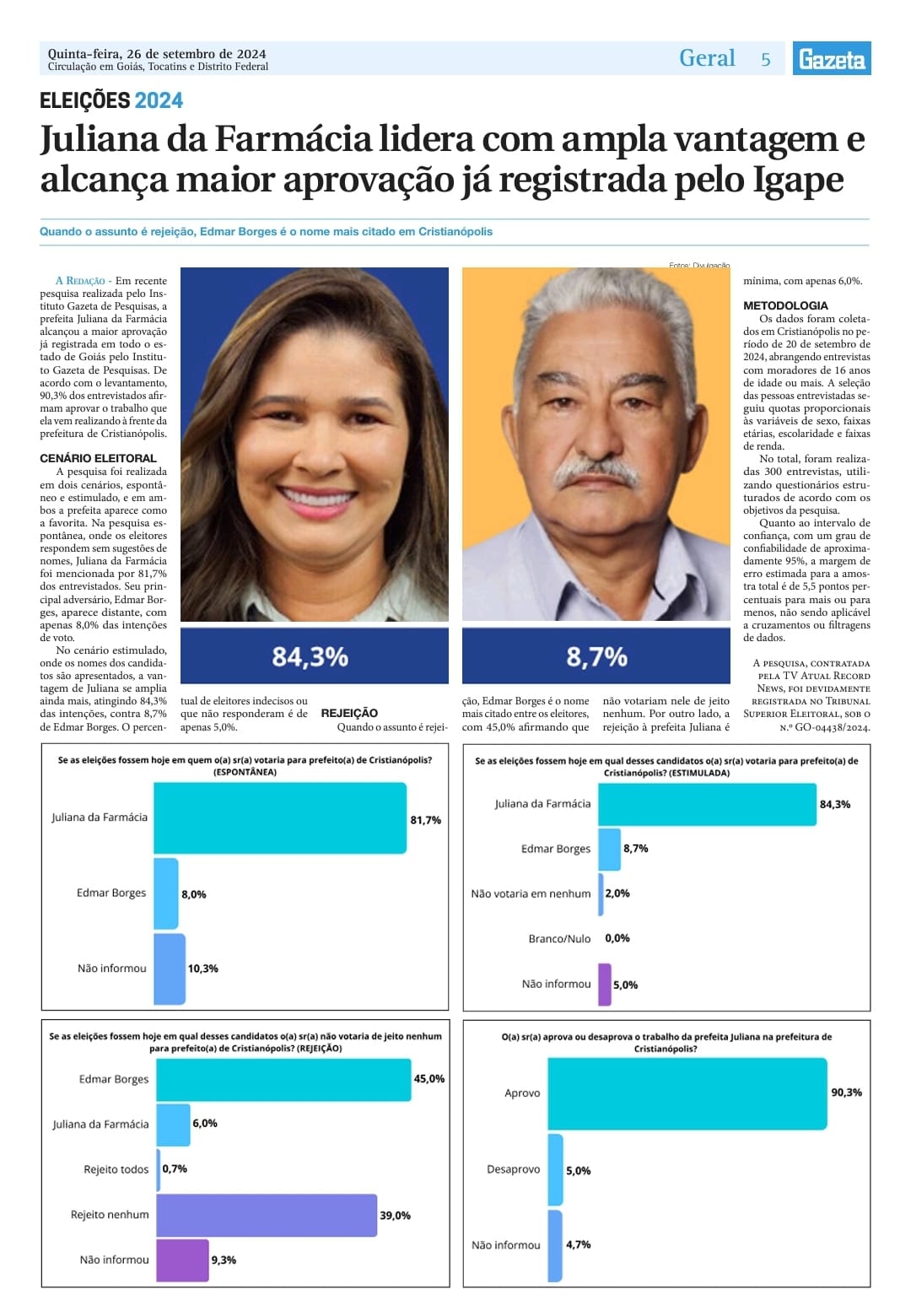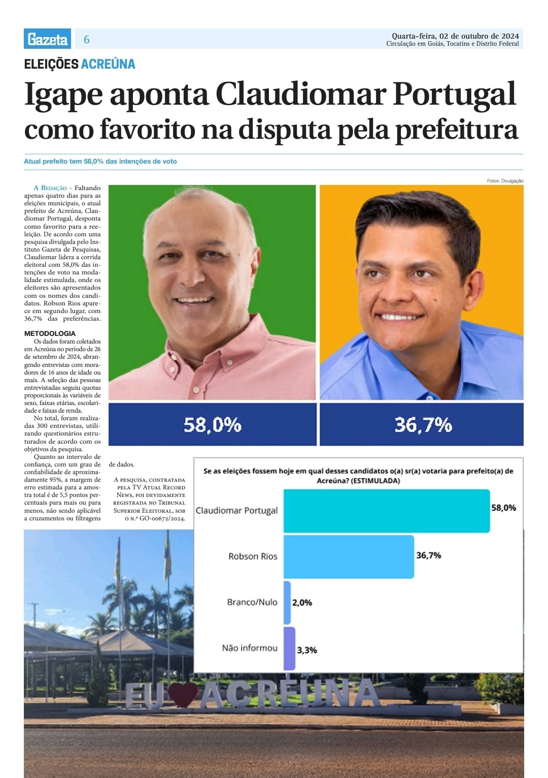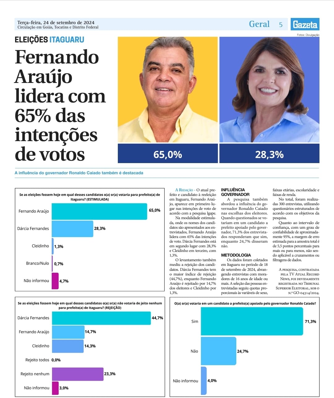 O Instituto Igape é referência em pesquisas eleitorais em Goiás, com histórico de precisão e compromisso com a verdade. O Igape é o Instituto que realiza pesquisas para a TV Atual, afiliada da Record News em Minas Gerais e Goiás, o instituto combina rigor metodológico com profundo conhecimento da realidade local.