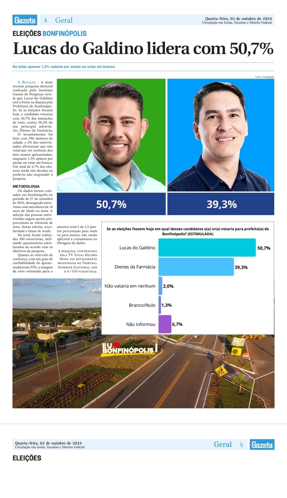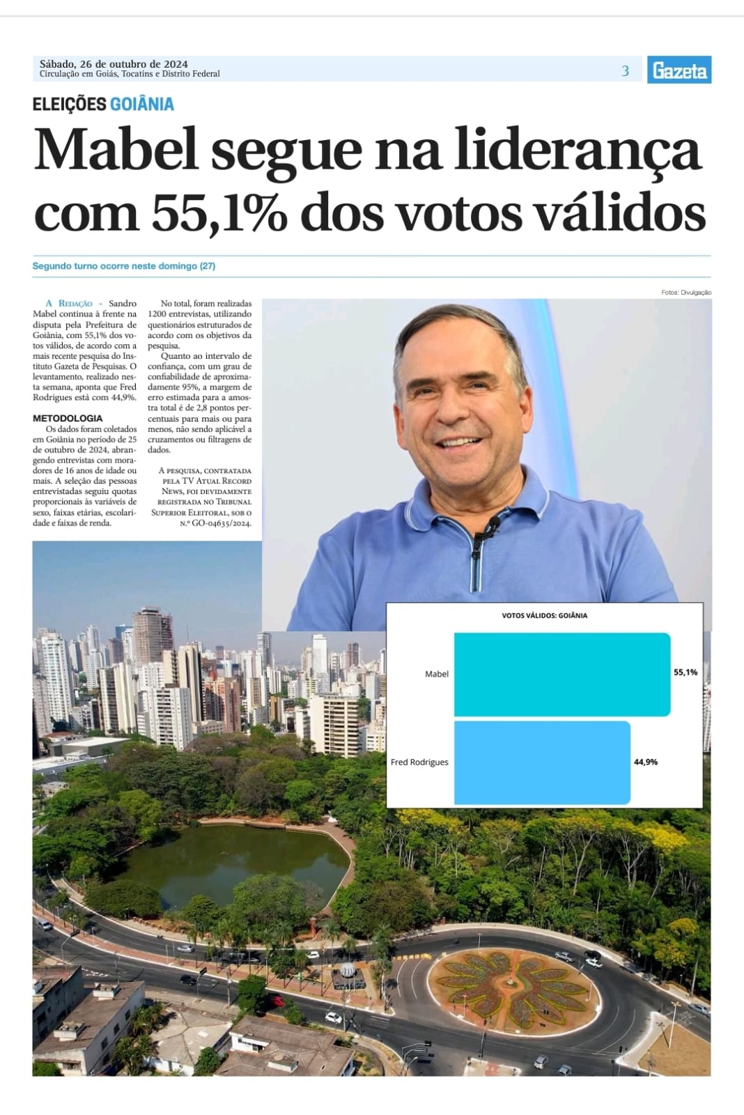 Na capital, Goiânia, o instituto trouxe o resultado exato já na sexta-feira, 25 de outubro de 2024, um dia antes da eleição: