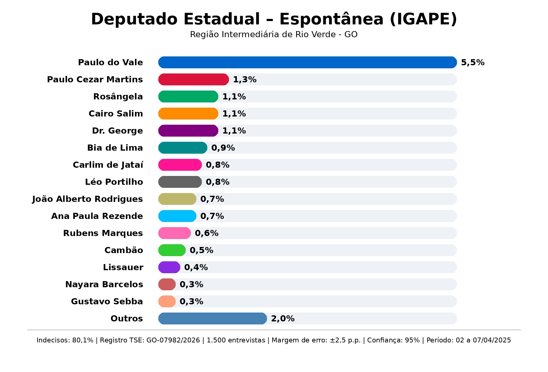 Médico e ex-prefeito de Rio Verde, Paulo do Vale construiu uma das gestões mais reconhecidas da região, com forte presença administrativa e alto nível de aprovação. Seu desempenho na pesquisa reflete o peso de quem já governou o principal município do sudoeste goiano.
