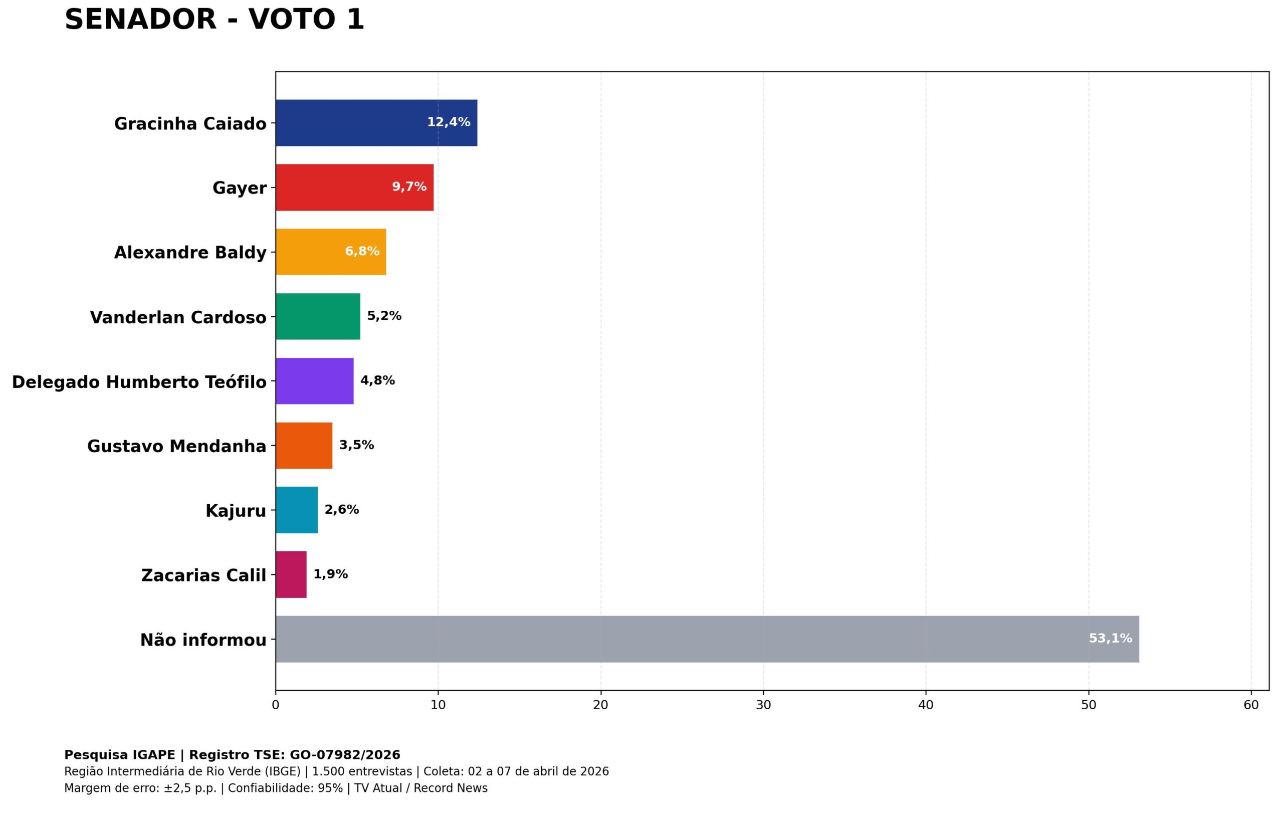 A mais recente pesquisa eleitoral realizada pelo Instituto Gazeta de Pesquisas (IGAPE), encomendada pela TV Atual / Record News, revela o cenário atual da disputa para o Senado no estado de Goiás, considerando a Região Intermediária de Rio Verde, delimitada pelo IBGE.