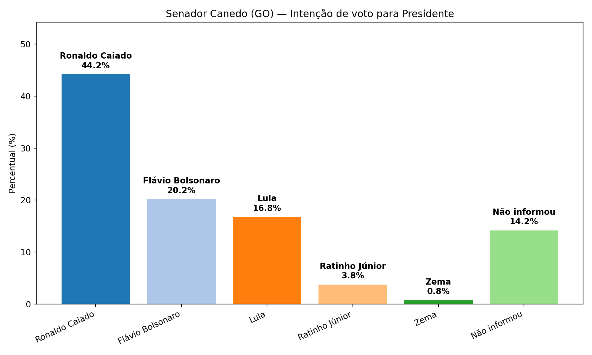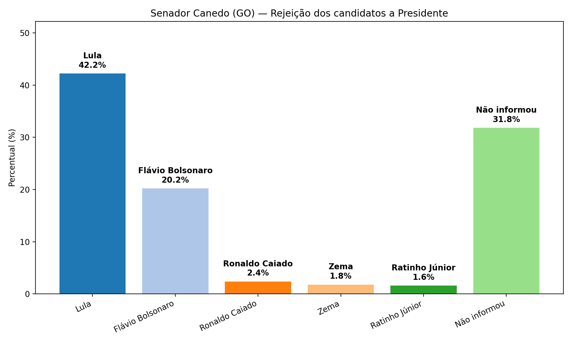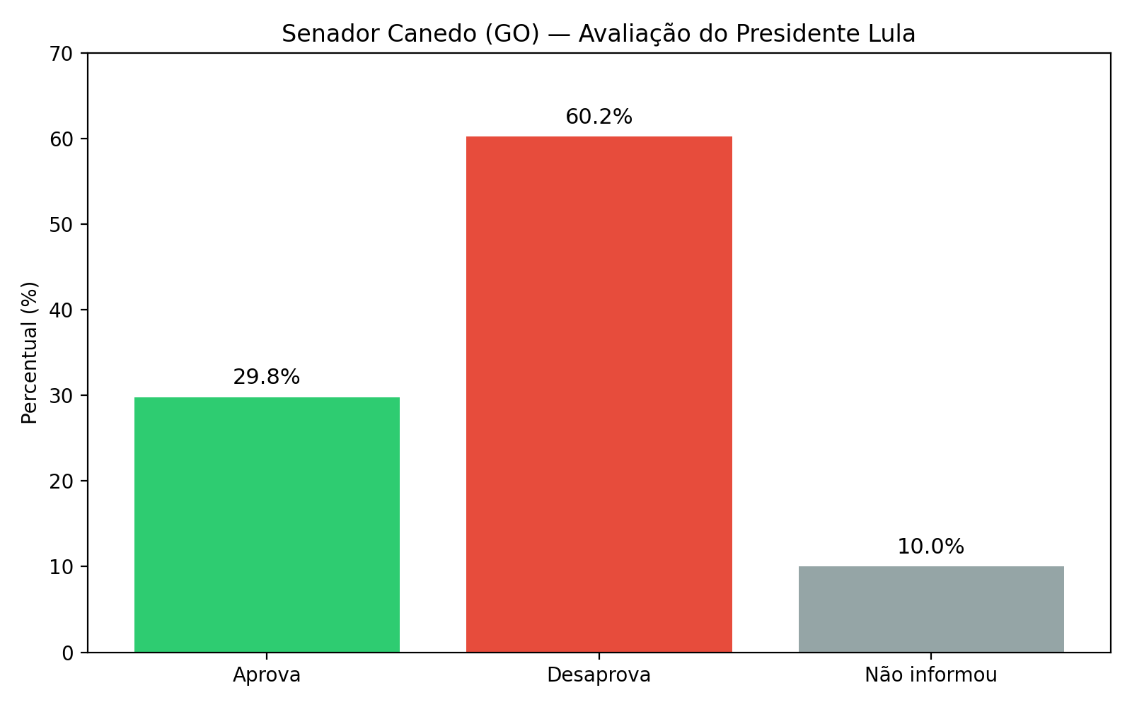Uma pesquisa eleitoral realizada em Senador Canedo (GO) revela o atual cenário da disputa pela Presidência da República, além da avaliação do governo federal e do índice de rejeição dos principais nomes testados.